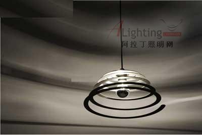 彎曲縈繞的燈罩讓人以為是蚊香的理念,這款的吊燈設(shè)計(jì)采取了生活中常見的因素,在第一眼即可拉緊與欣賞使用者的距離。然而你可以說蚊香的造型有點(diǎn)庸俗,但一定不會(huì)說此燈的設(shè)計(jì)庸俗——一旦它在暗夜里發(fā)出明亮的光,發(fā)揮照明的本職作用,便可見到圈圈光線如水紋般蕩漾在墻上,整個(gè)居室已成光影的奇妙世界。