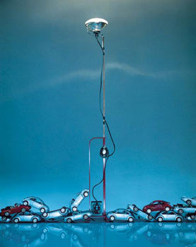 “對我們來說,美并不重要。物體的燈、雕塑的燈不算什么,重要的是它得執(zhí)行功能,首先得發(fā)光。創(chuàng)造性不是體現(xiàn)在外殼上,而是在燈具中,在這之后,如果最終呈現(xiàn)又好奇又討人喜好,那當然更好。此外,有些手藝人根本不懂設計,但他們卻創(chuàng)造了完滿、有用和漂亮的物品”。(N.阿斯貝思,《對阿基萊?卡斯狄里奧內(nèi)的采訪》)這里,設計師明確和發(fā)人深省地綜合了作為他的設計基礎的構(gòu)圖哲學:審美為功能服務,無用的東西就不是“美”的。Toio完全符合這些特點:它不加區(qū)別地結(jié)合性能不同的預制件(300瓦的車燈,銀色燈罩和從美國進口的印花玻璃,形如魚桿的六邊形金屬拉絲柱子,固定電線的魚桿環(huán),放在可當作提手的金屬底座上的起衡重作用的的變壓器),結(jié)果是一個移動光源,它可以放在家中不同時刻最需要的地方。這個燈證實了六十年代上半葉卡斯狄里奧內(nèi)兄弟的設計理念中最重要的內(nèi)容:移動性、適應性和功能性。