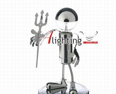 看過(guò)X戰(zhàn)警的都知道,機(jī)器人全身是由金屬組成的,金屬元素,一直代表著冷酷。當(dāng)金屬元素與武力結(jié)合起來(lái)的時(shí)候,就越發(fā)顯得冷酷。一個(gè)手握弓箭、斧頭等其他武器的鐵皮人偶,就可以將這種冷酷顯現(xiàn)出來(lái)了。燈光,可以將這種冷酷襯托得更加淋漓盡致,于是,就誕生了鐵皮人偶臺(tái)燈,冷酷的金屬元素照明。