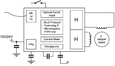 機電一體化和模塊化的方法都得到了單芯片步進(jìn)電機控制器集成電路的支持,在快速增長的車輛電子系統(tǒng)使得電子系統(tǒng)結(jié)構(gòu)過于復(fù)雜和昂貴的情況下,這兩個方法為廣大車輛制造商們所推崇。