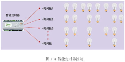采用智能定時(shí)器,在沒有采光或者不能利用采光時(shí)。按照工作時(shí)間及非工作時(shí)間不同的時(shí)間段切換不同的燈光組合,在滿足需要的前提下,投入最少的燈。見圖1-4。