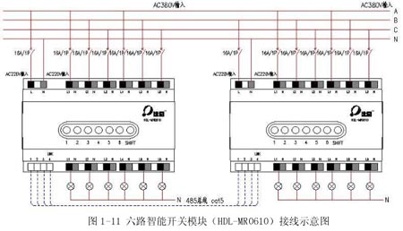 HDL-BUS系統(tǒng)為廣州河?xùn)|電子公司生產(chǎn)的智能照明控制系統(tǒng),不僅有上述功能,該系統(tǒng)采用開放性及高擴(kuò)展性協(xié)議,能使照明系統(tǒng)與樓宇控制系統(tǒng)、消防系統(tǒng)、保安系統(tǒng)、舞臺燈光系統(tǒng)等實(shí)現(xiàn)無縫聯(lián)接。其接線示意圖見 1-11、1-12、1-13。