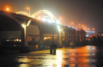 昨晚,東甌大橋霓虹閃爍,與北邊的江心嶼“燈光秀”和南邊的望江路亮麗工程相輝映,組成了一片璀璨奪目的夜景,使得鹿城的夜晚更加活力四射。據(jù)了解,沿江一帶的亮麗工程東起海壇山莊,西至東甌大橋,包括沿線建筑物、構(gòu)筑物、綠化帶、江濱堤岸以及郭公山、海壇山莊景觀的環(huán)境燈飾及照明工程,全長約4.5公里。除東甌大橋霓虹燈飾最近剛剛安裝完成外,上述其他環(huán)境燈飾及照明工程均已于去年國慶前施工完畢。