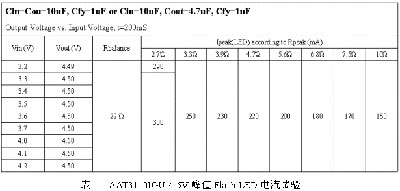 圖3是100-200mA峰值電流的手機(jī)照相機(jī)閃光燈電路圖,它用一顆AAT3110IGU-4.5V的電容式電荷泵,將手機(jī)鋰電池的電壓升壓并穩(wěn)壓至 4.5V,向一顆EL-61-25UWC Flash LED提供4.5V工作電壓、100-200mA峰值電流,F(xiàn)DG335N MOSFET作為閃光開(kāi)關(guān),峰值電流經(jīng)它形成回路。電荷泵的輸入濾波電容器為10uF,輸出濾波電容器為4.7uF,儲(chǔ)能電容器為1uF,均選用等效串聯(lián)電阻(ESR)小的X7R、X5R陶瓷電容器。RB為Flash LED平衡電阻,RF為峰值電流調(diào)節(jié)電阻,改變這個(gè)電阻可以設(shè)定峰值電流的大小,見(jiàn)表1 AAT3110IGU-4.5V峰值Flash LED電流試驗(yàn)表所示。圖3為閃光前后Flash LED的電流變化圖。
