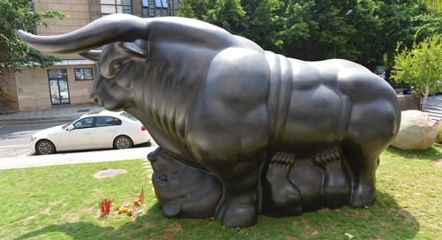 大盤一片綠油油,交易所里、電腦屏幕前一片哀鴻遍野,不少投資者惶恐不安。面對近期不容樂觀的經(jīng)濟數(shù)據(jù)和疲弱的股市,央行終于在市場期待中出手,周二晚間,央行再祭降息降準(zhǔn)利器,全球股市聞聲大漲,只是國內(nèi)股民不敢大喜。為此,小編特意整理了一組“牛壓熊”的雕塑美圖,給大伙壓壓驚。