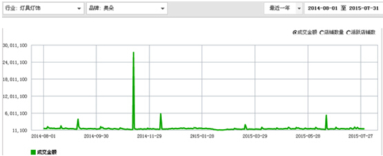 2014年8月到2015年7月,奧朵有關(guān)燈具燈飾的天貓銷售情況。