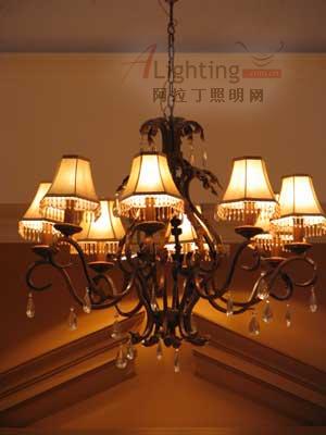 吊燈用于居室的分單頭吊燈和多頭吊燈兩種。前者多用于臥室、餐廳;后者宜裝在客廳里。吊燈有乳白燈罩,將磨砂燈泡裝在罩內(nèi),光線散射柔和。另一種是罩口朝下,燈光直接照射于室內(nèi),顯得光燦明亮。還有一種是罩口向上,燈光照到頂棚天花板上,然后反射下來(lái),讓人覺(jué)得柔和輕松。