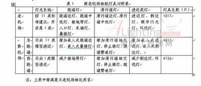 二、新老機(jī)場燈具數(shù)量與種類不同