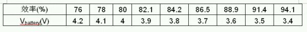 推薦LED的導(dǎo)通壓降小于或等于3.2V,取Vf=3.2V,則效率如表2所示。當(dāng)電池電壓小于3.6V時(shí),整體背光效率高于90%;當(dāng)電池電壓為4.2V,最低效率也有76%。目前手機(jī)用鋰電池的工作范圍在3.4V到4.2V之間。
