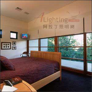 盡量利用漫反射的方式照明整個臥室空間。在頂角或踢腳的位置設(shè)計一些燈槽,讓燈光向頂面或地面照射,然后通過這些部位的反射光完成空間照明。同時,光照的強度不必很高,目的是讓均勻且微弱的漫反射為臥室創(chuàng)造一種寧靜、安逸、舒適的氛圍。