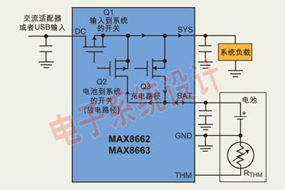 當(dāng)系統(tǒng)負(fù)載要求較低時(shí),來(lái)自外部電源的多余功率將被用來(lái)給電池充電。當(dāng)連接外部電源時(shí),系統(tǒng)可以在沒(méi)有電池或帶一個(gè)用盡的電池的情況下工作。外部電源可以是交流適配器、自動(dòng)適配器或USB源。這些IC設(shè)計(jì)用于智能蜂窩手機(jī)、PDA、互聯(lián)網(wǎng)設(shè)備和其它便攜式設(shè)備。