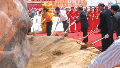 5月19日,意邦置業(yè)大手筆推出的“上海國際建材家居品牌中心”奠基儀式在這里舉行。來自國內社會各界的數(shù)百名嘉賓出席了本次儀式。一次普通的企業(yè)經(jīng)營活動中出現(xiàn)了一群政府要員,不能不讓人感到奇怪。這似乎決不是簡單的一個基建項目。