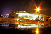 中心區(qū)北廣場燈柱靚麗圖 游泳館和她美麗倒影(圖) 濟(jì)南奧體中心游泳館夜景圖(圖) 濟(jì)南奧體中心網(wǎng)球館北立面夜景(圖)
