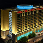 南京神旺大酒店夜景照明設(shè)計。以發(fā)光型壁燈、地埋式投光燈結(jié)合酒店大堂的內(nèi)透光照明,整體營造了一種“舒適、柔和”的酒店近景照明設(shè)計……