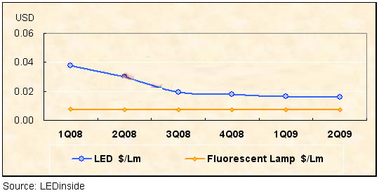 LED與現(xiàn)用傳統(tǒng)光源的價格對比 |