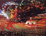 1990年北京亞運會開幕式 運動員入場儀 亞運會開幕式紅幅 開幕式可愛吉祥物盼盼 廣場煙花表演