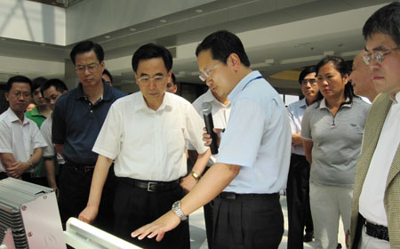 時(shí)任廣州市市委書(shū)記朱小丹視察晶科電子