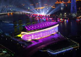 藝術(shù)燈光:系統(tǒng)將建筑立面塑造成一個(gè)抽象的藝術(shù)顯示屏,或直接或間接突出建筑 立面裝飾特色,呈現(xiàn)時(shí)而白云山泉、波光粼粼;時(shí)而萬馬奔騰、百花齊 放的藝術(shù)燈光效果,程序靈活多變。 最大特點(diǎn):我們認(rèn)為是建筑獨(dú)特的裝飾肋結(jié)構(gòu),結(jié)設(shè)計(jì)師巧妙的將LED全彩柔光管燈 具隱蔽安裝在槽體內(nèi),特別的構(gòu)圖是獲得優(yōu)雅美感的物理基礎(chǔ)。 最出彩點(diǎn):項(xiàng)目的出彩點(diǎn)也應(yīng)該歸屬于充滿藝術(shù)感的布燈構(gòu)圖,不僅充分體現(xiàn)了建 筑結(jié)構(gòu)特點(diǎn),燈光畫面的構(gòu)成在表現(xiàn)穩(wěn)重大氣的同時(shí)也流露出隱藏不住 的生機(jī)和靈氣。 最難以實(shí)現(xiàn):是在燈具如此不規(guī)則的藝術(shù)造型分布狀態(tài)下,實(shí)現(xiàn)完全控制,充分展 現(xiàn)各種場景的藝術(shù)燈光美感。上海光聯(lián)將平面圖像控制技術(shù)完美的結(jié) 合在一起,將設(shè)計(jì)師的創(chuàng)意淋漓盡致地展現(xiàn)。[詳細(xì)] |