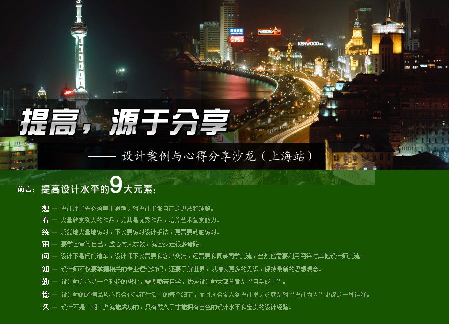 為建立設(shè)計(jì)師面對(duì)面交流學(xué)習(xí)的平臺(tái),協(xié)助設(shè)計(jì)師提高設(shè)計(jì)水平,阿拉丁照明網(wǎng)于8月27日在上海舉辦設(shè)計(jì)案例與心得分享沙龍,各大設(shè)計(jì)師共同參與縱談?wù)彰髟O(shè)計(jì)! >>詳細(xì)請(qǐng)點(diǎn)擊