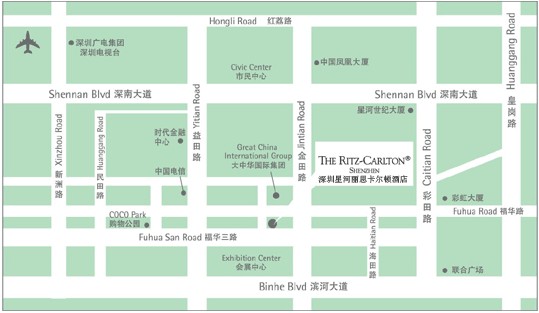 1.沿深南大道(東行),沿深南路右拐至金田路