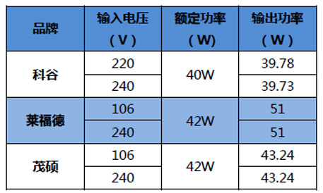 從測試結(jié)果來看,三樣品均滿足標(biāo)準(zhǔn)規(guī)定。需要注意的是,采用額定電壓測試所得功率,會有一個功率范圍,標(biāo)稱功率只需在這個范圍內(nèi),即為符合標(biāo)準(zhǔn)。