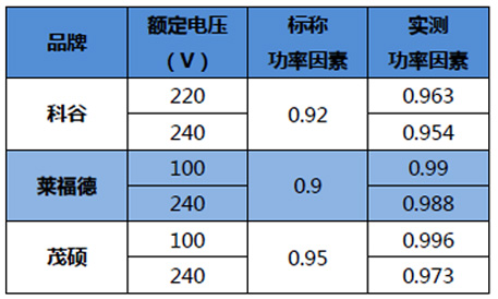 電源輸入采用制造商標(biāo)稱輸入電壓范圍的最高電壓和最低電壓進行,實測數(shù)據(jù)顯示,三款樣品功率因素均滿足標(biāo)準(zhǔn)測量電路功率因數(shù)不低于標(biāo)記值超過0.05的規(guī)定,其中萊福德的功率因素最高,其次為茂碩......[詳細]