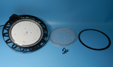 該產(chǎn)品整體外觀結(jié)構(gòu),包括LED燈盤和LED驅(qū)動(dòng)器盒,均為圓形設(shè)計(jì)。LED驅(qū)動(dòng)器盒由4個(gè)內(nèi)六角螺釘固定,LED燈盤外殼由8個(gè)內(nèi)六角螺釘固定。