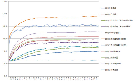 可以看到,產(chǎn)品溫升測(cè)試是合格的。溫度不算高,應(yīng)該是獨(dú)特的散熱器設(shè)計(jì)起到作用,例如LED驅(qū)動(dòng)器盒的導(dǎo)風(fēng)槽工藝應(yīng)該起到良好的散熱作用。良好的散熱能力對(duì)產(chǎn)品壽命起到積極作用。還在于這個(gè)點(diǎn)的溫度一直保持在29.7的恒溫狀態(tài),相對(duì)于普通模組的散熱,具有獨(dú)特優(yōu)勢(shì)...... [詳細(xì)]
