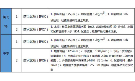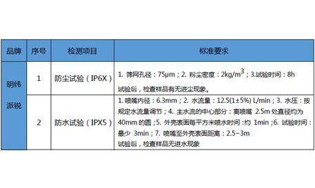 根據(jù)每款樣品的不同標(biāo)稱IP值,測(cè)試中依據(jù)相應(yīng)防水防塵標(biāo)準(zhǔn),四款樣品測(cè)得結(jié)果均為無進(jìn)塵、無進(jìn)水,符合標(biāo)稱。...... [詳細(xì)]