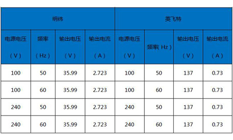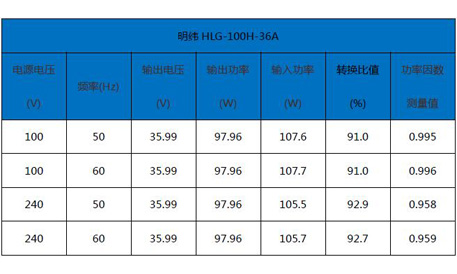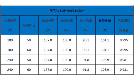 同樣電壓輸出條件下,明緯電源樣品輸出功率測(cè)得值比輸入功率高,轉(zhuǎn)換比值最高為108.9%,超過8.9%,但仍在±10%范圍內(nèi),符合標(biāo)準(zhǔn)要求。