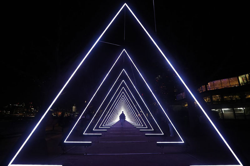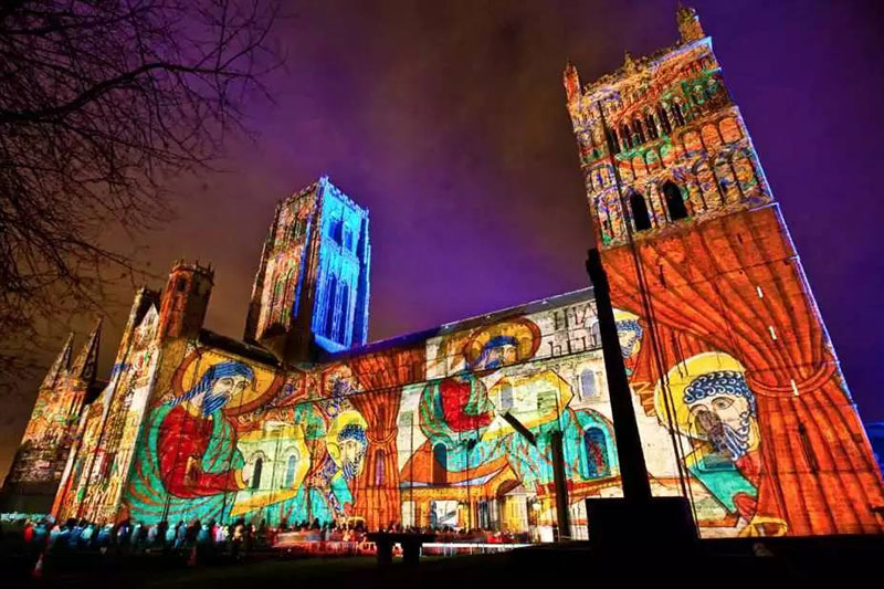 盧米埃爾燈光節(jié)(Lumiere Light Festival)于2009年在英國杜倫首次舉辦,之后又“巡展”至英國多地,2016年來到了倫敦。盧米埃爾燈光節(jié)是英國最大的燈光節(jié),其“巡展”的方式,讓英國多地的居民和游客都能夠有機會一賞燈光節(jié)的魅力。盧米埃爾燈光節(jié)由英國創(chuàng)意公司Artichoke主辦,這一公司常與藝術(shù)家合作,在公共空間中進行一些藝術(shù)項目,不久前,為紀(jì)念倫敦大火而在泰晤士河畔焚燒模型的計劃,即是由這個公司主辦的。