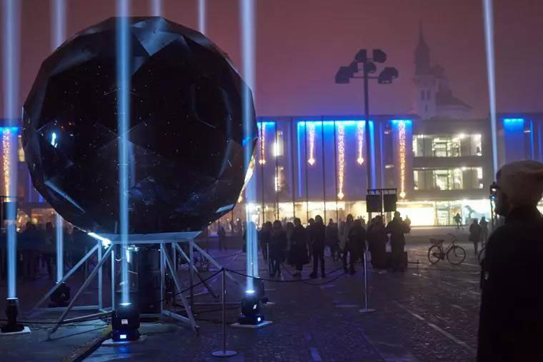 該裝置是由來自斯洛維尼亞的藝術(shù)家Martin Bricelj Baraga完成的, 并將該裝置命名為Moonolith。比起其他景觀,它更像是一個紀念碑式的永久性作品。它似乎向人們揭示了月亮和其他星星之間的奇妙關(guān)系,受到了人們的關(guān)注。該項目在設(shè)計初期便決定了采用模塊化的結(jié)構(gòu)組裝,并希望整體的形象是一個Buckminster Fuller風格的網(wǎng)格狀穹頂結(jié)構(gòu)。