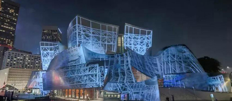 對于知名建筑的“表皮”進(jìn)行創(chuàng)意性改造,總是能吸引眼球,且充滿話題性。例如每年音樂燈光節(jié)上的悉尼歌劇院,當(dāng)然,弗蘭克?蓋里(Frank Gehry)在洛杉磯設(shè)計的標(biāo)志性建筑華特?迪士尼音樂廳(Walt Disney Concert Hall)也是其一。這次的光影大秀是由土耳其藝術(shù)家瑞克?阿納多(Refik Anadol)操刀進(jìn)行夢幻又繽紛的"改造"。表演免費向公眾開放。為了紀(jì)念洛杉磯愛樂樂團(tuán)成立100周年,一場前所未有的三維投影表演將在華特?迪士尼音樂廳的不銹鋼外立面上上演。