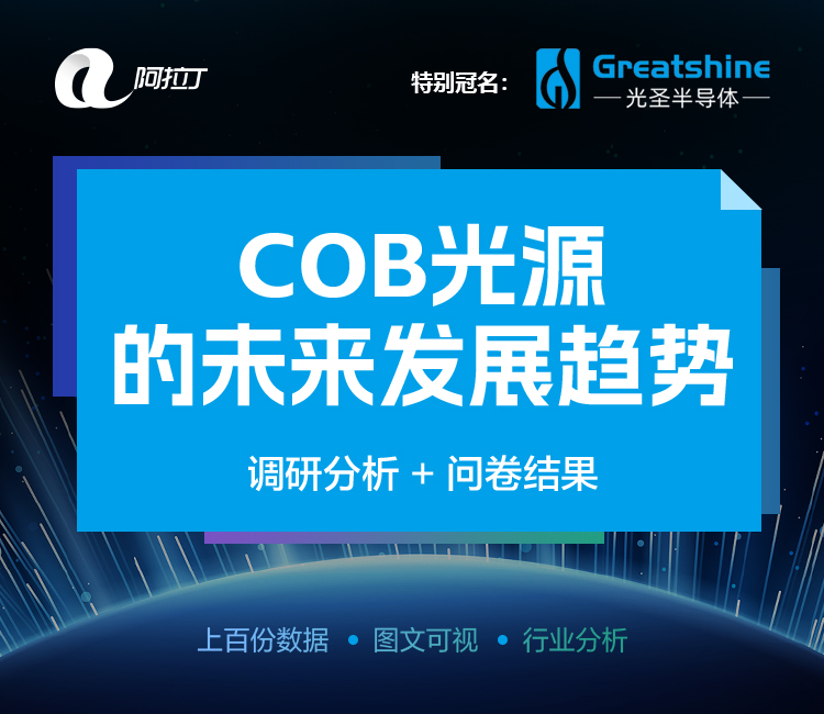 為更好促進(jìn)COB顯示應(yīng)用和智能照明應(yīng)用的發(fā)展,了解COB光源最新市場(chǎng)需求及技術(shù)趨勢(shì),阿拉丁全媒體特別發(fā)起了《COB光源未來(lái)發(fā)展趨勢(shì)產(chǎn)業(yè)調(diào)研》,調(diào)研國(guó)內(nèi)COB光源發(fā)展情況,通過(guò)系統(tǒng)的數(shù)據(jù)統(tǒng)計(jì)、整理、分析,得出當(dāng)前國(guó)內(nèi)COB封裝品牌排行榜單,并形成調(diào)研報(bào)告,為國(guó)內(nèi)COB光源產(chǎn)業(yè)發(fā)展提供有益參考。 詳情>>