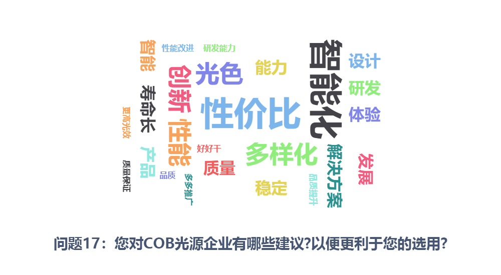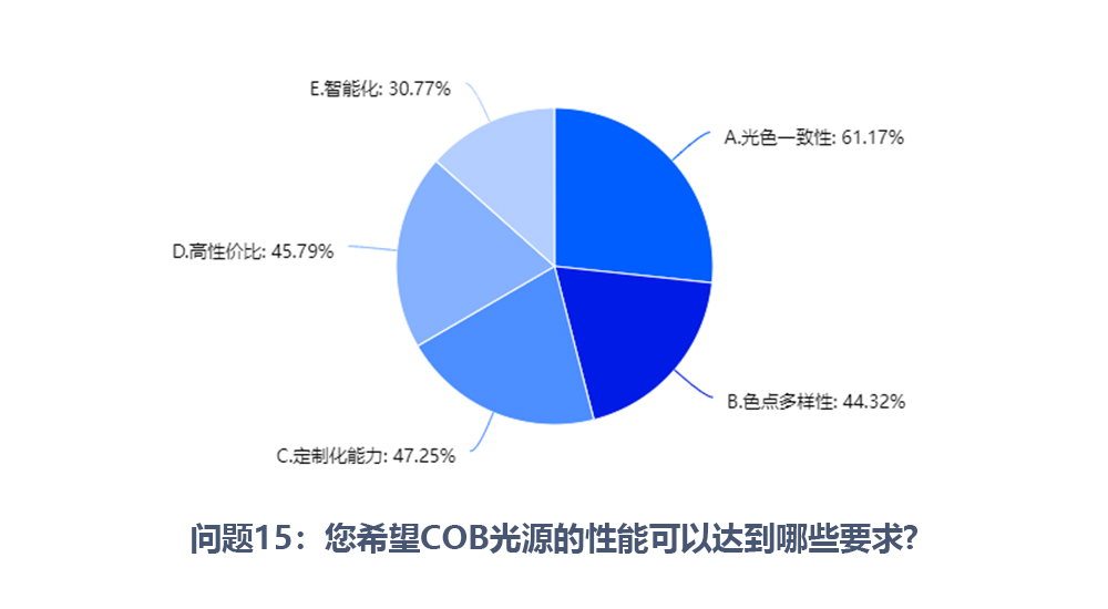 作為一種為智能照明量身定制的創(chuàng)新技術(shù)解決方案,COB光源在性能、體積、品質(zhì)等方面的優(yōu)勢(shì)逐漸凸顯。為了更好促進(jìn)智能照明的發(fā)展,了解COB光源最新市場(chǎng)需求及技術(shù)趨勢(shì),阿拉丁新聞中心特別發(fā)起本期調(diào)研--「COB光源未來(lái)發(fā)展趨勢(shì)」問(wèn)卷調(diào)查,現(xiàn)將為大家?guī)?lái)詳細(xì)且充實(shí)的分析,希冀為照明行業(yè)發(fā)展提供有價(jià)值的參考。那么,COB光源的未來(lái)發(fā)展趨勢(shì)又是怎樣的呢?