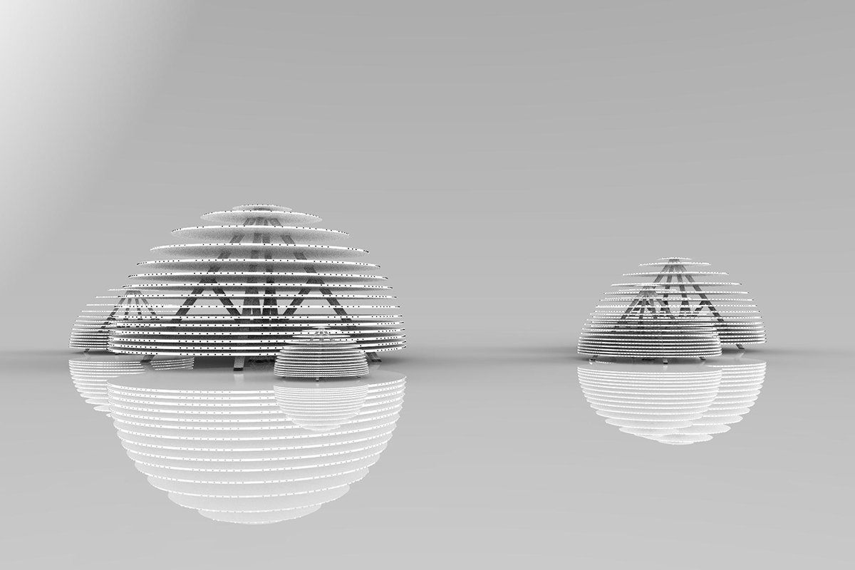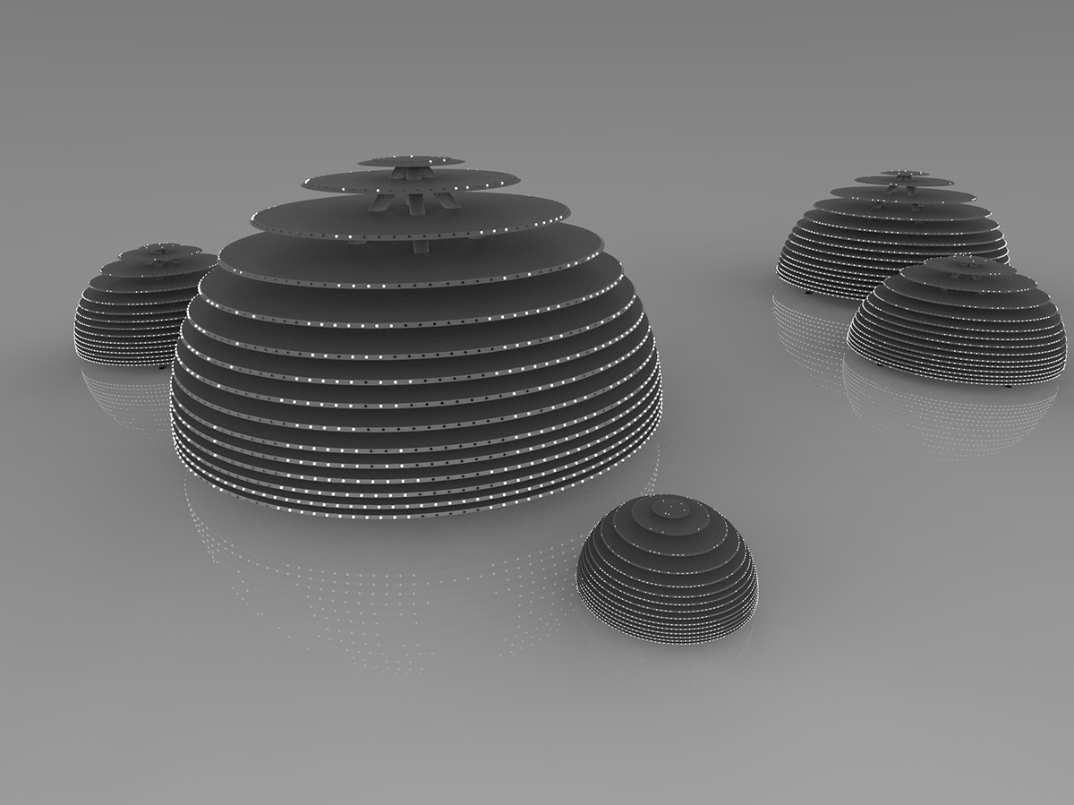 這是一款景觀燈。燈具放置在有水面的地方,和倒影相映為一個(gè)球體。圓盤側(cè)邊裝一顆顆連續(xù)的點(diǎn)光源,通過燈光編程控制燈光效果。燈光可變換光彩和影像。 白色散點(diǎn)光模式,相互映射,體現(xiàn)出祥和平靜的氛圍。仿佛遨游星空,看到宇宙中漂浮的星球。讓人冥思宇宙、自然。 彩色徑向光變化,仿生于深海發(fā)光櫛水母,變幻莫測(cè)的燈光,就像會(huì)呼吸的生物體,帶來神秘的體驗(yàn),仿佛遨游深海。 該組景觀燈錯(cuò)落有致,各個(gè)角度觀感均不相同,給人以樂趣和新鮮感。