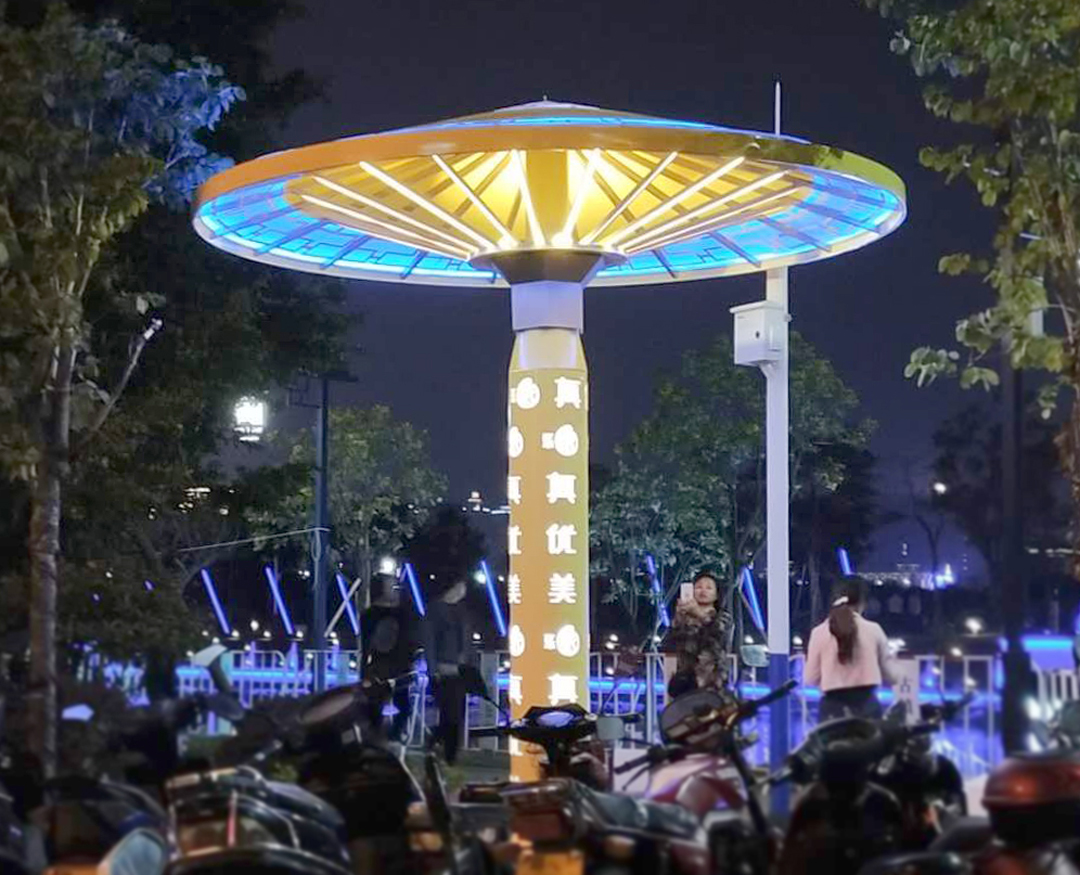 人與自然恰當(dāng)和諧,特色亦簡(jiǎn)潔,大方和便民,真優(yōu)美在提倡自然和諧與理性設(shè)計(jì)為原則上原型選擇以古典撐傘為切入,悠久歷史,優(yōu)雅高貴的獨(dú)特形象特色,燈身比例均勻,造型新穎且靈活融合在不同場(chǎng)所空間,內(nèi)部結(jié)構(gòu)嚴(yán)密,層次統(tǒng)一有規(guī)律,燈光亦是虛實(shí)有序,不同的亮度漸退使燈身整體更覺(jué)紳士,相輔相成,宜賞宜應(yīng),典雅且人性。