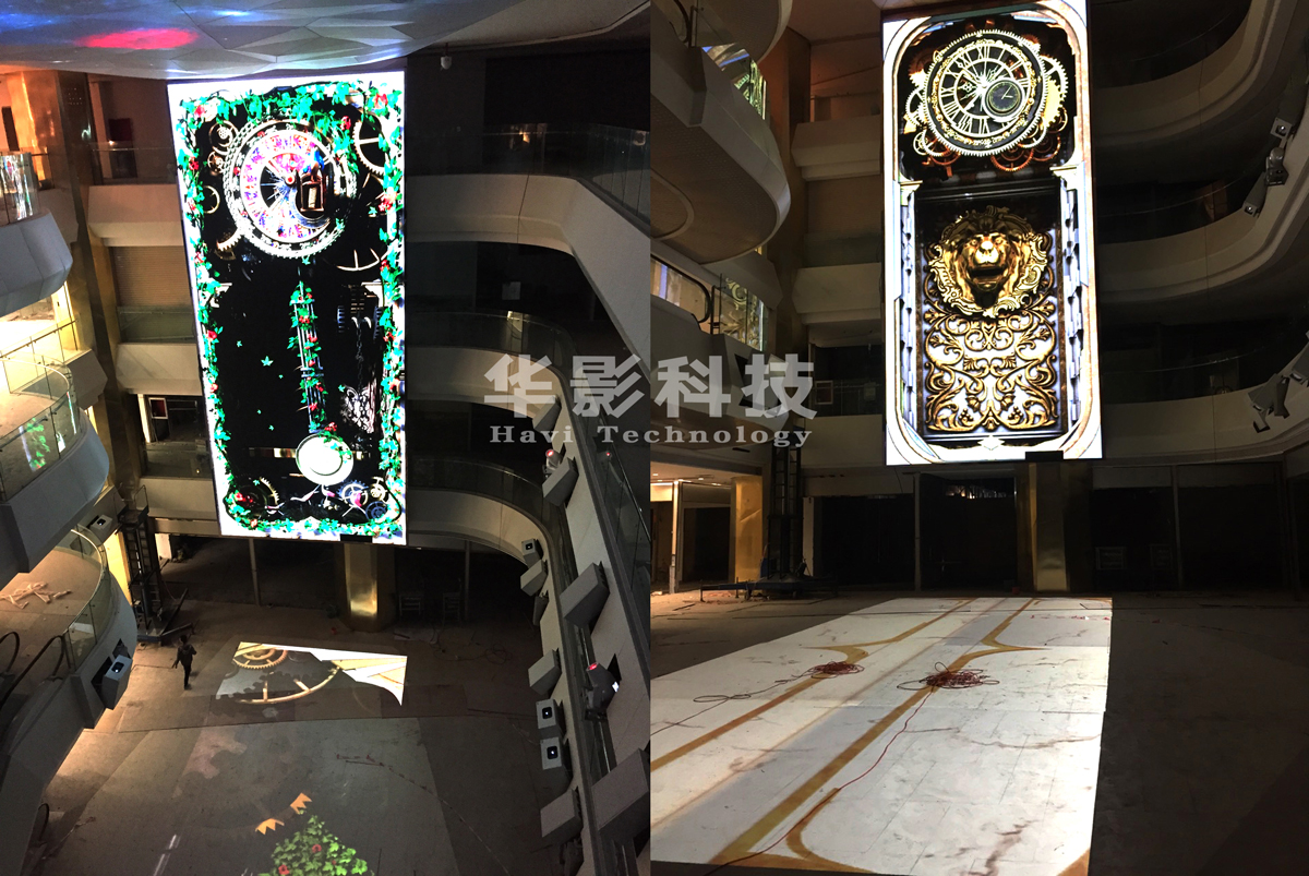 7臺12000流明、8臺7000流明投影燈融合方式投射。