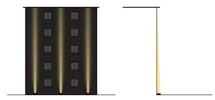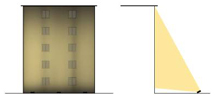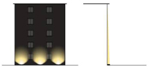 窄光束投光燈方案:水平方向易形成強烈的明暗對比。必須縮小燈具之間的距離、增加燈具數(shù)量才能改善這一問題。